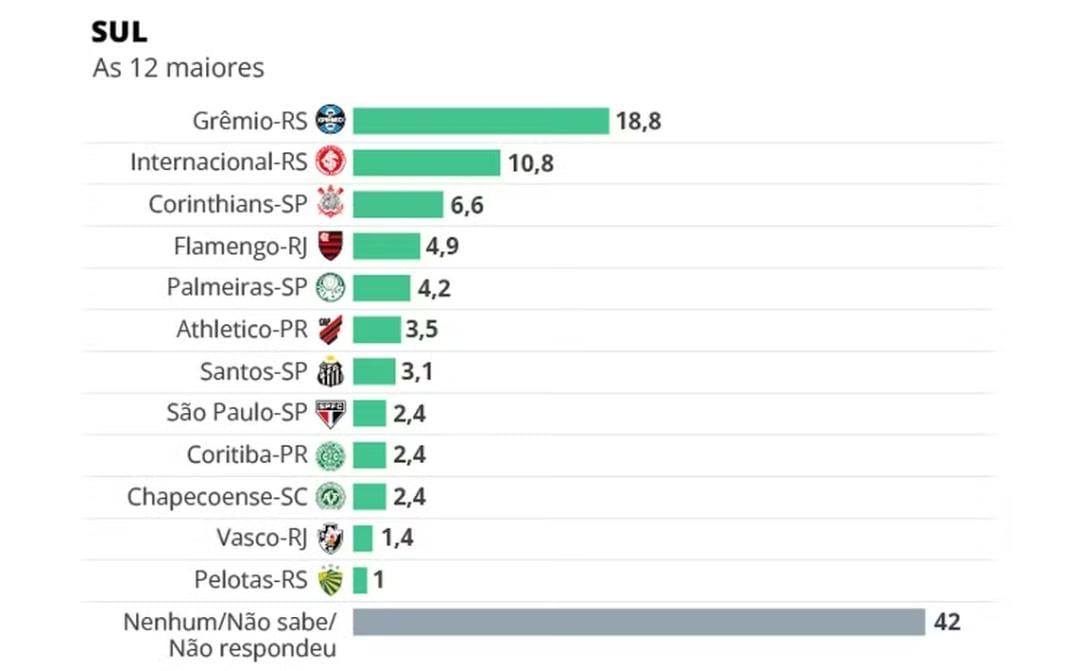 Ranking das maiores torcidas do Sul do país (Ipsos-Ipec 2025):